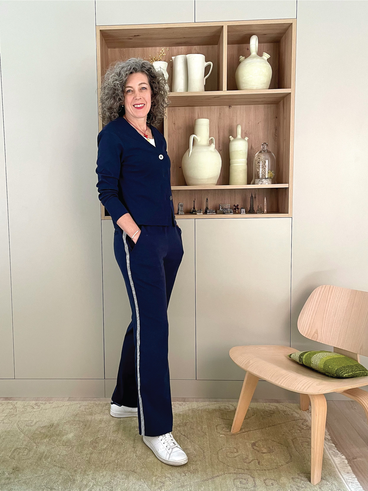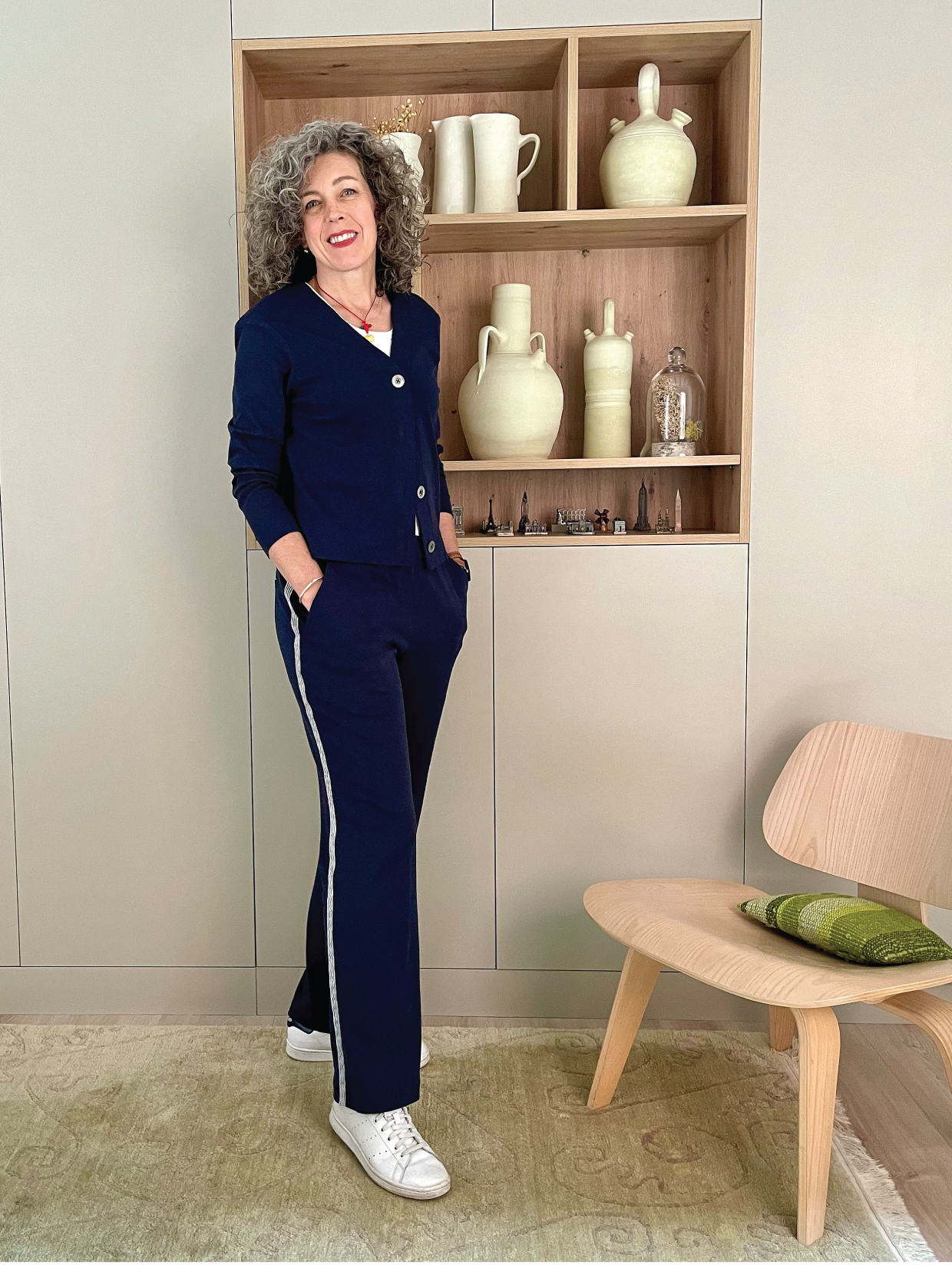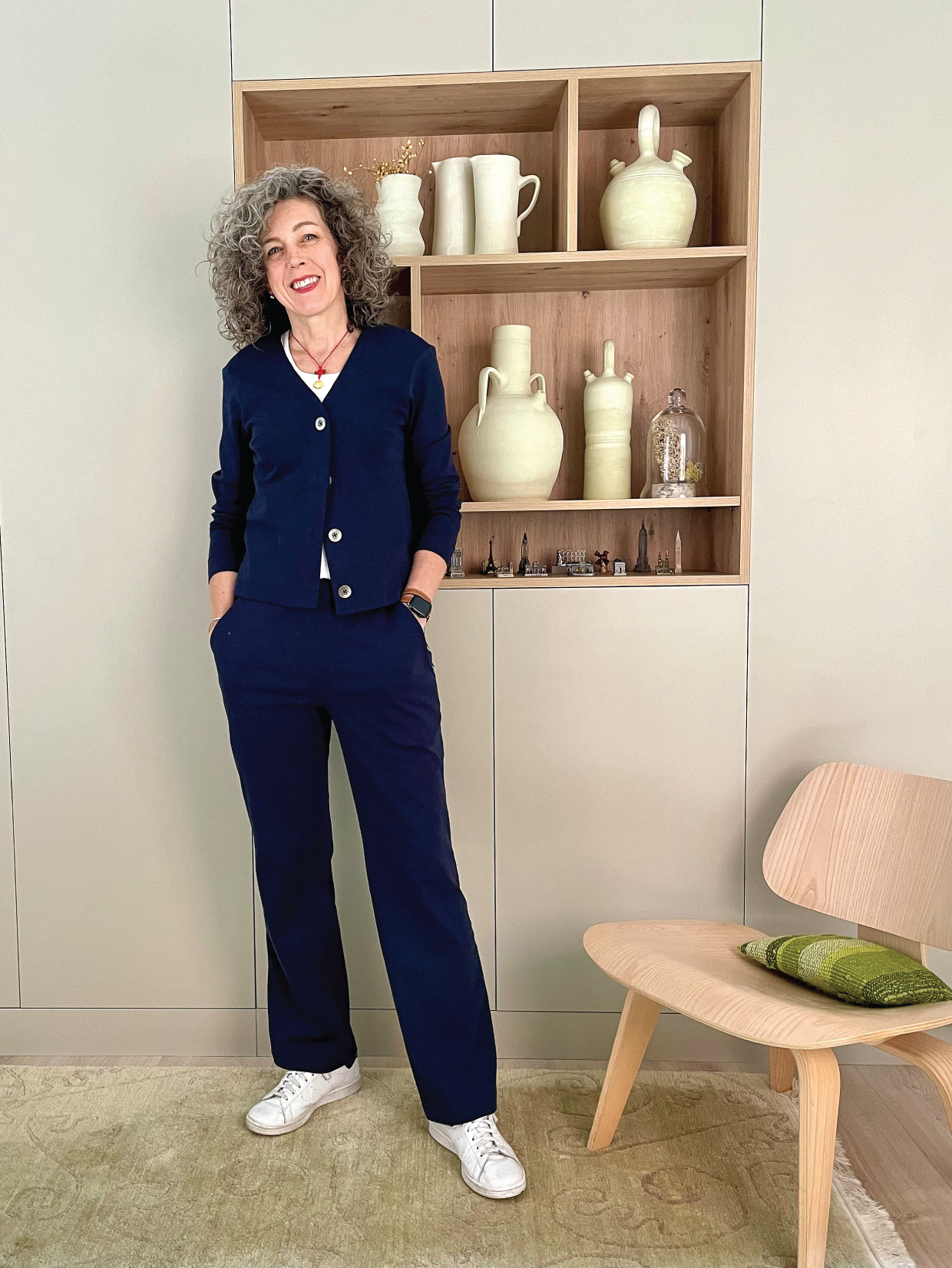 I finished sewing these quite a while ago and never got around to photographing them. This was part of my sewing plans for last fall: inter-rib (knit) Montauk Trousers and a coordinating Melville Cardigan. I get some sort of exercise almost every day, which means I wear a lot of very casual gym clothes early in the morning. But for relaxing at home I wanted instead of gym clothes or pajamas. So this set is sort of a nod to those very comfortable gym clothes but with a bit of a style upgrade. They’re not the clothes I wear when I go out, but I’m ok wearing them to take a quick stroll through the neighborhood park, a run to the supermarket, etc.
