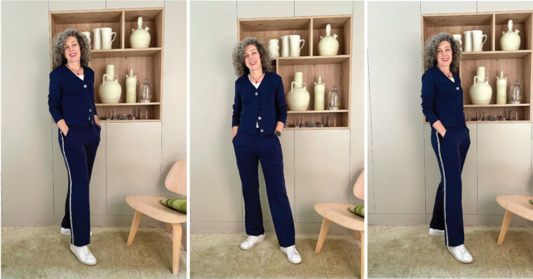 I finished sewing these quite a while ago and never got around to photographing them. This was part of my sewing plans for last fall: inter-rib (knit) Montauk Trousers and a coordinating Melville Cardigan. I get some sort of exercise almost every day, which means I wear a lot of very casual gym clothes early in the morning. But for relaxing at home I wanted instead of gym clothes or pajamas. So this set is sort of a nod to those very comfortable gym clothes but with a bit of a style upgrade. They’re not the clothes I wear when I go out, but I’m ok wearing them to take a quick stroll through the neighborhood park, a run to the supermarket, etc.