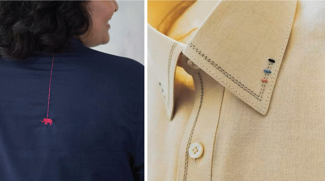6. If you aren’t much for hand embroidery, what about a machine-stitched detail like this clever collar embellishment using just straight stitches and well-placed bartacks? This, too, would be great on our Classic Shirt.