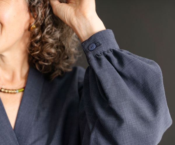 This pattern works best with woven fabrics with some body like cotton poplin, lightweight twill, shirtings, sateen, linen, and double gauze.