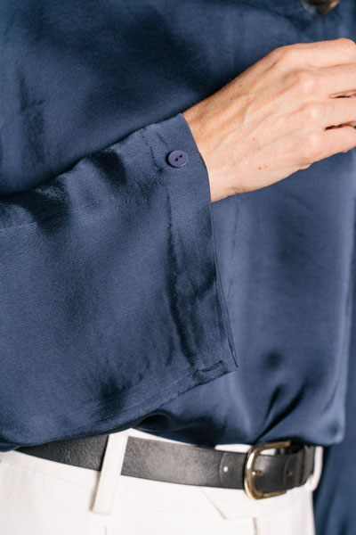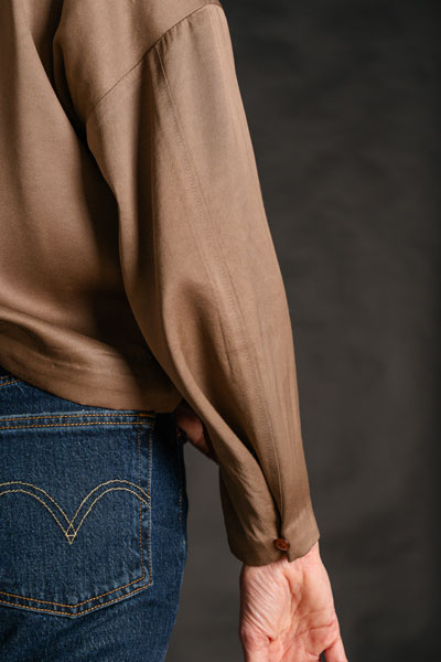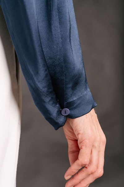 This pattern works best with drapey to moderately drapey fabrics like satin, lawn, linen, and crepe.
