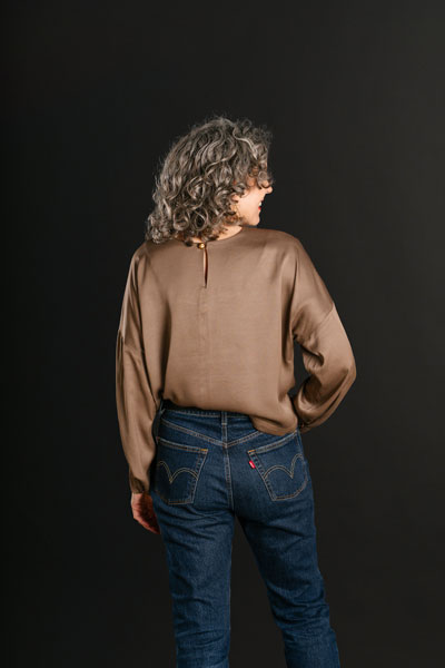 A simple, oversized pullover blouse designed for woven fabrics that can also be used with stable knits. Both views are boxy with a dropped sleeve. View A features a slightly cropped hem and a two-piece long sleeve with a keyhole opening at the back. View B is tunic length with a V-notch at the front and short sleeves. Mix and match the details and try different fabric types to create a variety of looks! Includes cup sizes for A/B, C, and D cups for a perfect fit. This style is designed to be oversized. If you prefer a closer fit, you can go down one size.